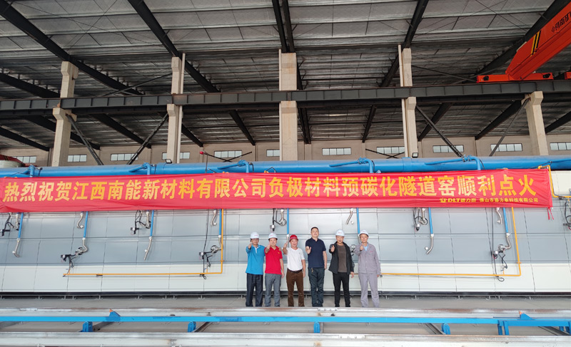 在全球新能源產(chǎn)業(yè)蓬勃發(fā)展的大背景下,位處“亞洲鋰都”宜春的江西南能新材料有限公司(以下簡(jiǎn)稱(chēng)“江西南能”)高瞻遠(yuǎn)矚、緊抓時(shí)機(jī),在對(duì)市場(chǎng)上現(xiàn)有預(yù)碳化隧道窯進(jìn)行了嚴(yán)格考察及評(píng)估后,與德力泰攜手打造的兩條高標(biāo)準(zhǔn)、高要求的石墨負(fù)極預(yù)碳化隧道窯,于10月20日成功點(diǎn)火。