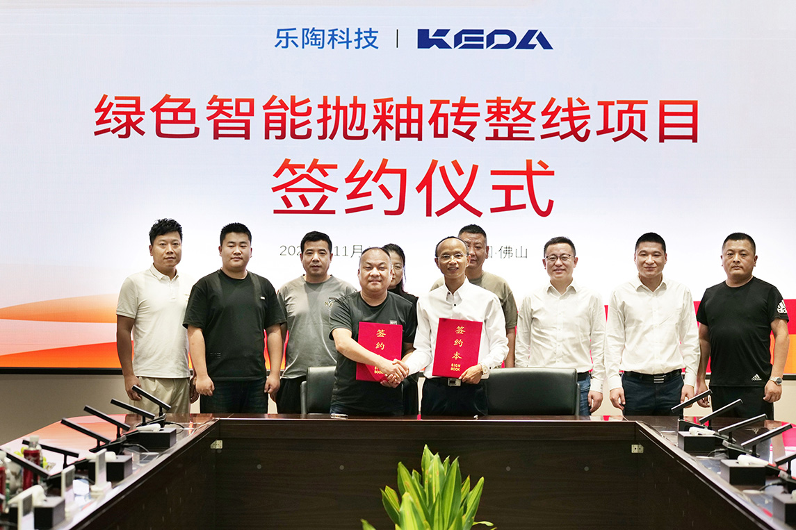 近日,科達(dá)陶機(jī)與陽城樂陶科技(以下簡稱“樂陶科技”)合作的綠色智能拋釉磚智能整線項(xiàng)目簽約儀式在科達(dá)總部101會(huì)議室隆重舉行。