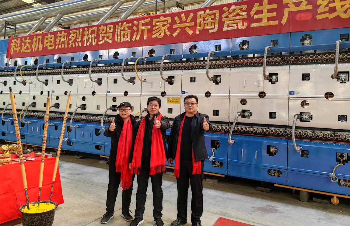 金昌建陶董事長楊家興攜生產(chǎn)經(jīng)營管理團(tuán)隊(duì)、科達(dá)陶機(jī)臨沂銷區(qū)總經(jīng)理喬峰參加了點(diǎn)火儀式。