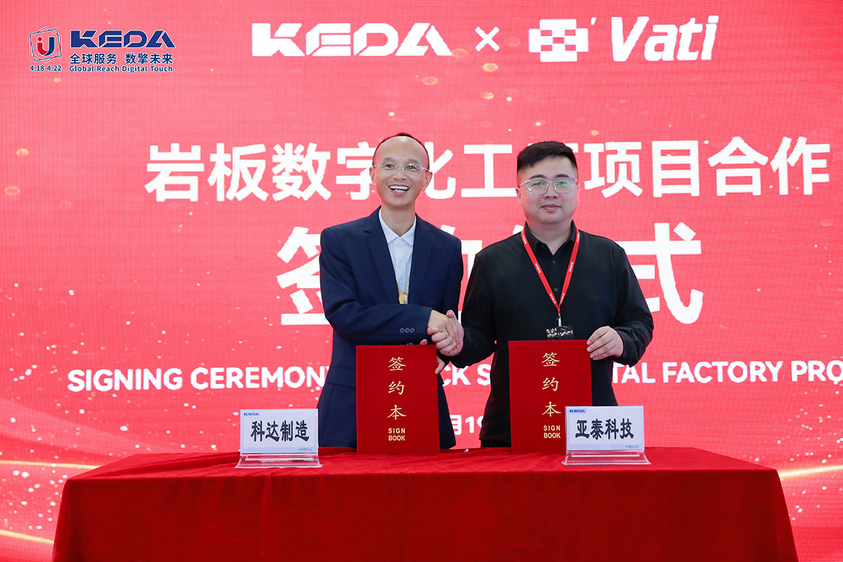 繼2024佛山潭洲陶瓷展首日科達與河南嘉北科技簽約啟動甄陶MOM3.0項目之后,科達陶機數(shù)字化業(yè)務再下一城,4月19日,科達陶機與湖南亞泰科技有限公司(以下簡稱“亞泰科技”)成功簽約,啟動了巖板數(shù)字化工廠項目。