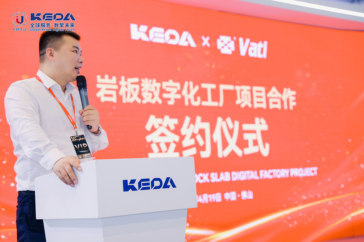 亞泰科技總裁麻赟威在致辭中表示,“亞泰科技的巖板已經(jīng)做得非常有競爭力了,能夠?qū)崿F(xiàn)產(chǎn)銷平衡,如今選擇與科達合作實施數(shù)字化工廠項目,正是為了進一步提升我們的智造實力,以數(shù)字化管理變革,打造更有競爭力的產(chǎn)品,我們珍惜巖板,希望這一高端產(chǎn)品能夠配得上最好的設備和管理?!?br />