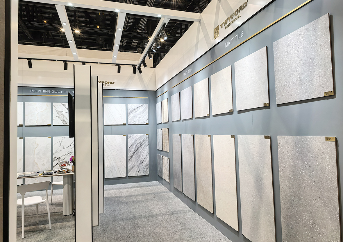 特福國際攜規(guī)格為600×600(mm)和600×1200(mm)的拋釉磚,以及300×600(mm)墻磚為觀眾帶來了自然與空間的極致享受。憑借著非凡的魅力和出色的品質(zhì),成功收獲眾人的贊譽。特福國際精心打造的展位,以現(xiàn)代極簡風格成為展會中一道靚麗的風景。