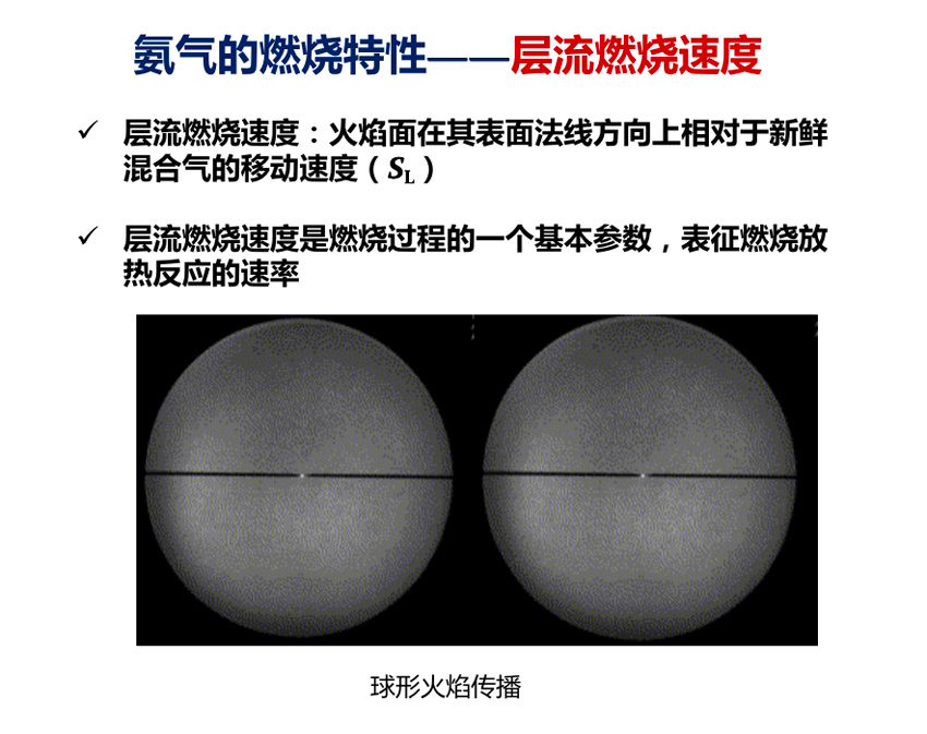 與天然氣的主要成分甲烷以及氫氣進行對比,氨氣作為直接的燃料能源,具有以下特點:第一,氨氣的熱值較低,僅在3000千卡/立方米左右;第二,最大層流燃燒速度較慢,僅為天然氣的五分之一左右,第三,可燃范圍窄,可燃極限的當量比為0.63-1.40,穩(wěn)定性較好,不易燃易爆。怎么樣能夠使氨進行高速穩(wěn)定燃燒成為首先要解決的問題。