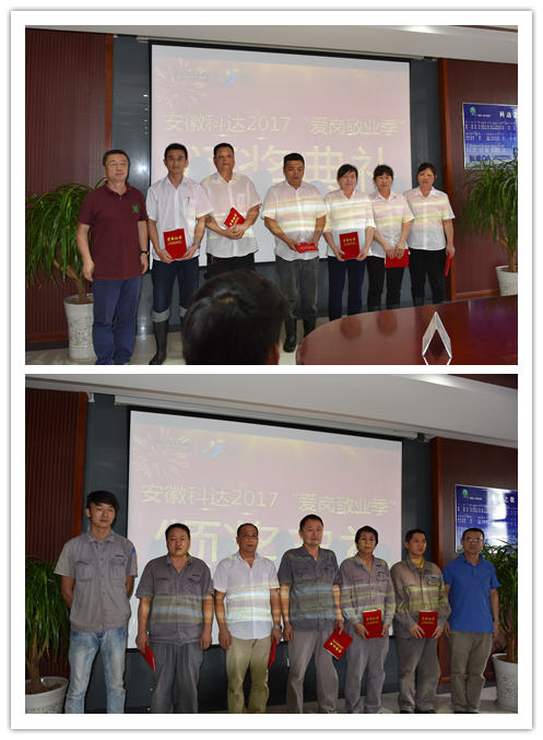 6月30日,安徽科達(dá)2017“愛崗敬業(yè)季”頒獎典禮在安徽商務(wù)中心大會議室隆重舉行。公司副總裁周鵬、董事長助理兼投資發(fā)展部經(jīng)理李躍進(jìn)、安徽產(chǎn)供應(yīng)中心總經(jīng)理白勇以及來自各單位一線崗位中層管理人員及獲獎人員出席了會議。安徽行政管理經(jīng)理楊麗主持了會議。