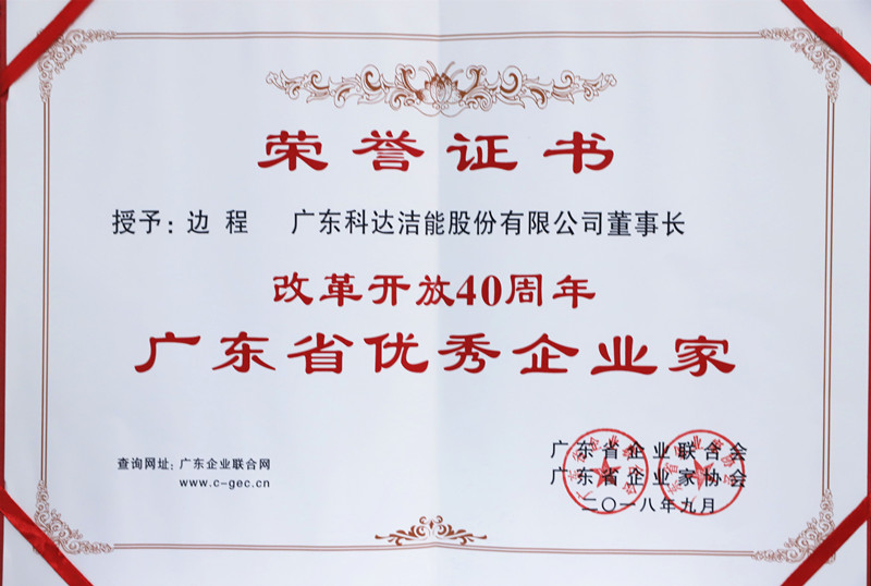 2018 年是全面貫徹黨的十九大精神的開局之年,也是改革開放40 周年。為紀(jì)念改革開放 40 周年,回顧 40 年來廣東企業(yè)取得的重大成就和對中國經(jīng)濟(jì)發(fā)展的突出貢獻(xiàn),宣傳企業(yè)家先進(jìn)典型,弘揚(yáng)優(yōu)秀企業(yè)家精神,樹立創(chuàng)新創(chuàng)業(yè)、創(chuàng)造創(chuàng)優(yōu)的時代榜樣,推動廣東企業(yè)實(shí)現(xiàn)高質(zhì)量發(fā)展。9月26日,主題為“時代榜樣,不忘初心再出發(fā)”的第24屆廣東省企業(yè)家活動日大會在廣州舉行。省委書記李希接見全省企業(yè)家代表和改革開放40周年廣東省優(yōu)秀企業(yè)、優(yōu)秀企業(yè)家代表。省長馬興瑞出席會議并講話。省人大常委會副主任呂業(yè)升、省政協(xié)副主席李心參加了接見。副省長陳良賢主持會議。會上隆重表彰了改革開放40周年廣東省優(yōu)秀企業(yè)和優(yōu)秀企業(yè)家,公司董事長邊程榮獲“改革開放40周年廣東省優(yōu)秀企業(yè)家”稱號。