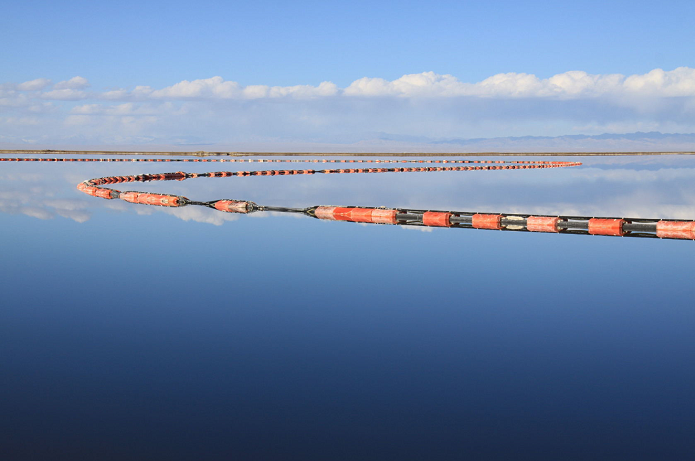 △ 藍(lán)科鋰業(yè)公司雄偉壯觀的鹽湖取鹵場(chǎng)景。