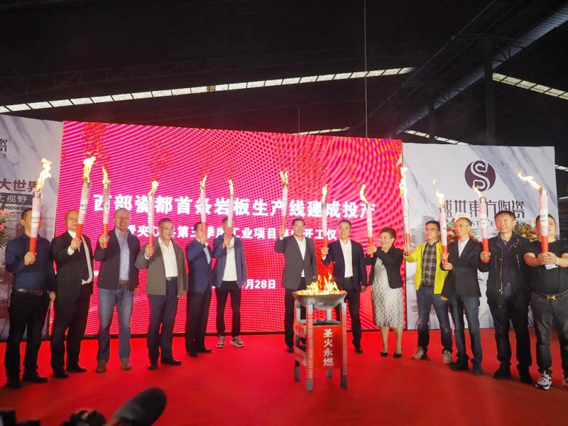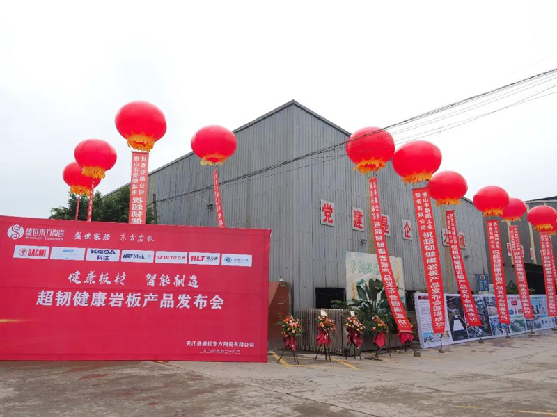 日前,在舉國上下喜迎新中國成立71周年華誕之際,夾江縣盛世東方陶瓷有限公司(以下簡稱“盛世東方”)在其生產(chǎn)基地盛大舉行了超韌健康巖板產(chǎn)品發(fā)布會。盛世東方董事長方海瓊、夾江縣政府領(lǐng)導(dǎo),國內(nèi)經(jīng)銷商、供應(yīng)商合作伙伴及新聞媒體等數(shù)百人出席了發(fā)布會,共同見證盛世東方首條1200×2400(mm)巖板生產(chǎn)線建成投產(chǎn)的高光時刻。