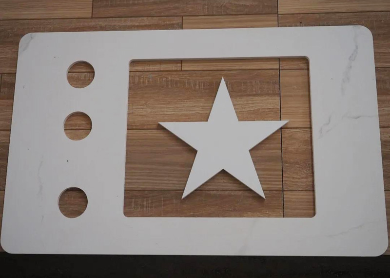 在盛世東方的工廠,巖板成品經(jīng)過現(xiàn)場水刀加工,實現(xiàn)了完美的45度角切割,并且沒有崩角產(chǎn)生,加工圓孔更無任何缺陷。盛世東方實現(xiàn)了首次巖板出品即精品。