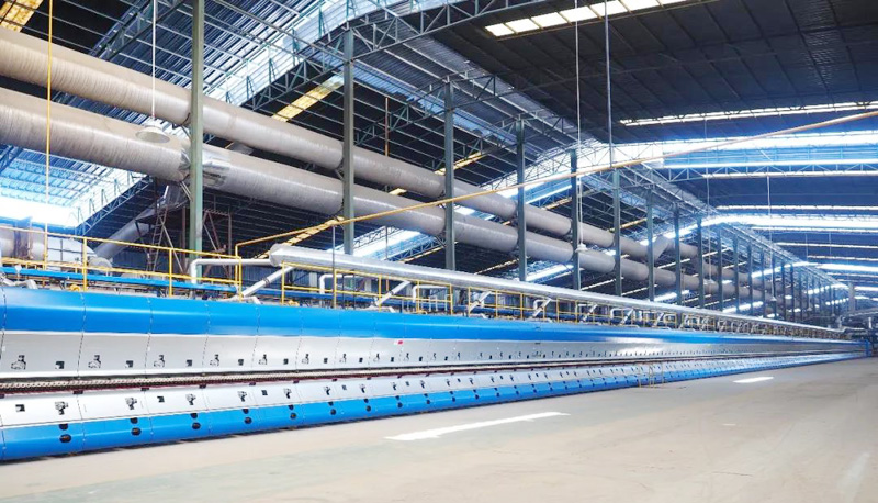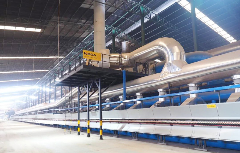 在盛世東方廠房車間,科達350米長的窯爐如一條藍(lán)色巨龍橫臥于此,這是科達全新一代工業(yè)4.0+數(shù)字智能化高端巖板窯爐,繼在廣東中盛有了首次成功應(yīng)用之后再獲成功。