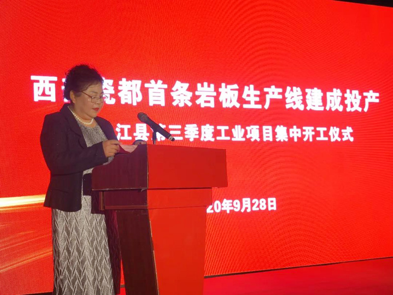 “2020年公司產(chǎn)品實現(xiàn)轉(zhuǎn)型升級,全面淘汰原有1條高耗能低產(chǎn)能的內(nèi)墻磚生產(chǎn)線,并引進國際先進技術(shù)裝備與健康材料,開發(fā)順應(yīng)新時代的新型板材,快速籌建4條工業(yè)智能制造4.0巖板生產(chǎn)線。9月初,我公司首條1200×2400(mm)、800×2600(mm)巖板線全面順利投產(chǎn),隨著我公司超薄大規(guī)格巖板生產(chǎn)線竣工點火,產(chǎn)品規(guī)格達1600×3200(mm),厚度3-6mm, 我們要打造西部超韌健康板材的領(lǐng)航企業(yè)?!狈胶-傇谕懂a(chǎn)儀式上表示。