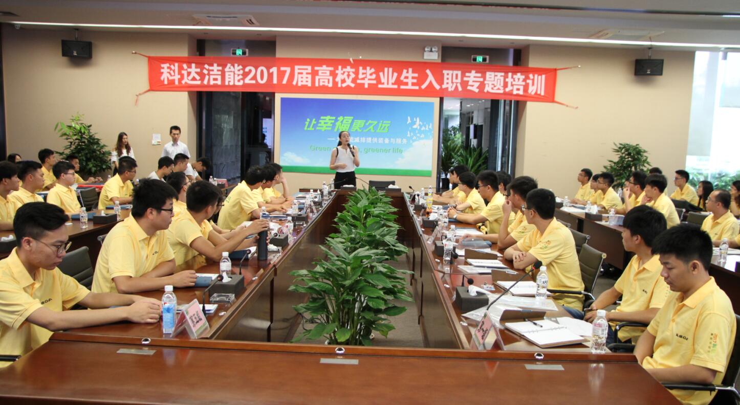 7月4日,科達(dá)潔能2017屆高校畢業(yè)生入職專題培訓(xùn)隆重拉開(kāi)帷幕。81位應(yīng)屆高校畢業(yè)生加入科達(dá)大家庭,成為職場(chǎng)“新人”,構(gòu)筑起科達(dá)五支關(guān)鍵人才隊(duì)伍之中“畢業(yè)生人才隊(duì)伍”的重要組成部分。