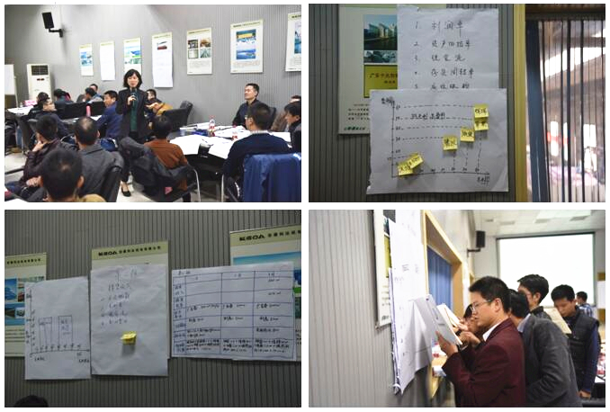 在本次集訓(xùn)中,各小組針對上一階段的項(xiàng)目進(jìn)展進(jìn)行了總結(jié)匯報。在匯報的過程中,老師針對存在的問題進(jìn)行了促動和輔導(dǎo),特別指出大家在思路范圍上及與商業(yè)的緊密結(jié)合度不足的問題,并提出了改進(jìn)建議,同時要求學(xué)員以事實(shí)說話、以數(shù)據(jù)說話,找根源,杜絕拍腦袋、想當(dāng)然、“我以為”的現(xiàn)象和想法,為各小組后續(xù)的行動計劃提供了有效輔導(dǎo)。與此同時,小組學(xué)員間也積極群策群力,針對自己熟悉的部門和領(lǐng)域?yàn)槠渌〗M提供有效的意見及建議。在課程結(jié)束后,各小組自發(fā)進(jìn)行了小組研討及制定下一步行動計劃方案,部分小組討論到深夜12點(diǎn),為各小組點(diǎn)贊。