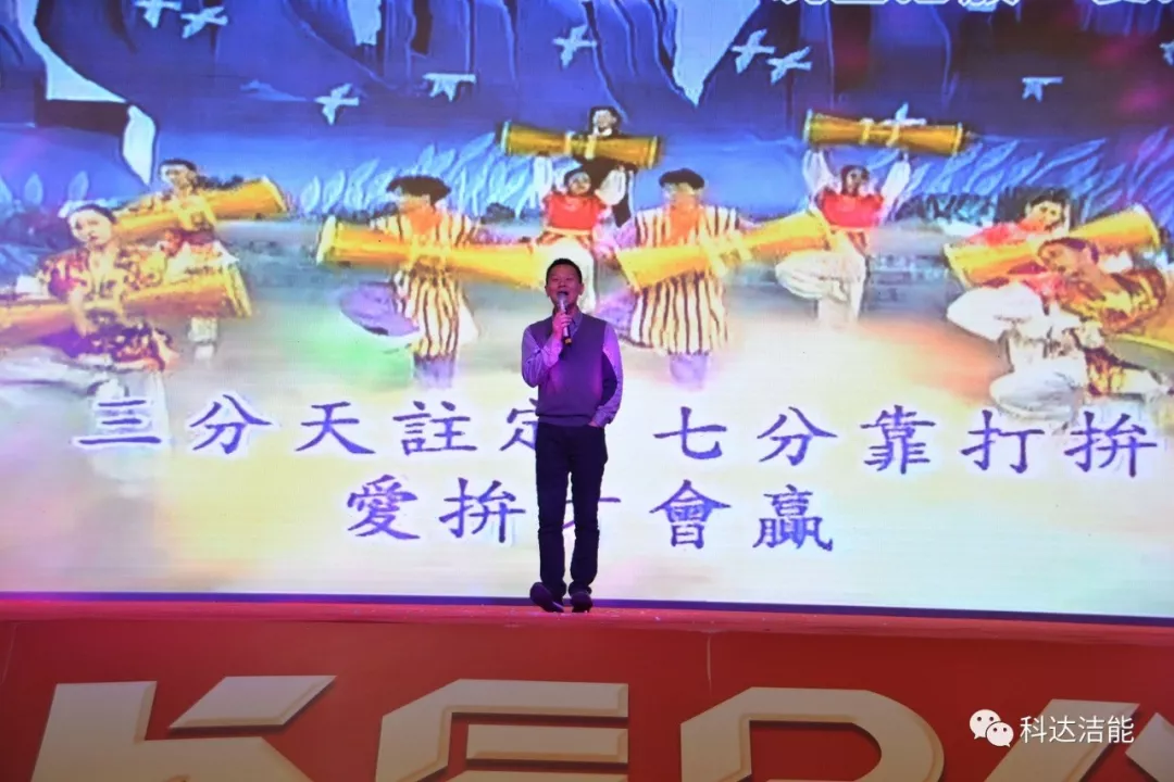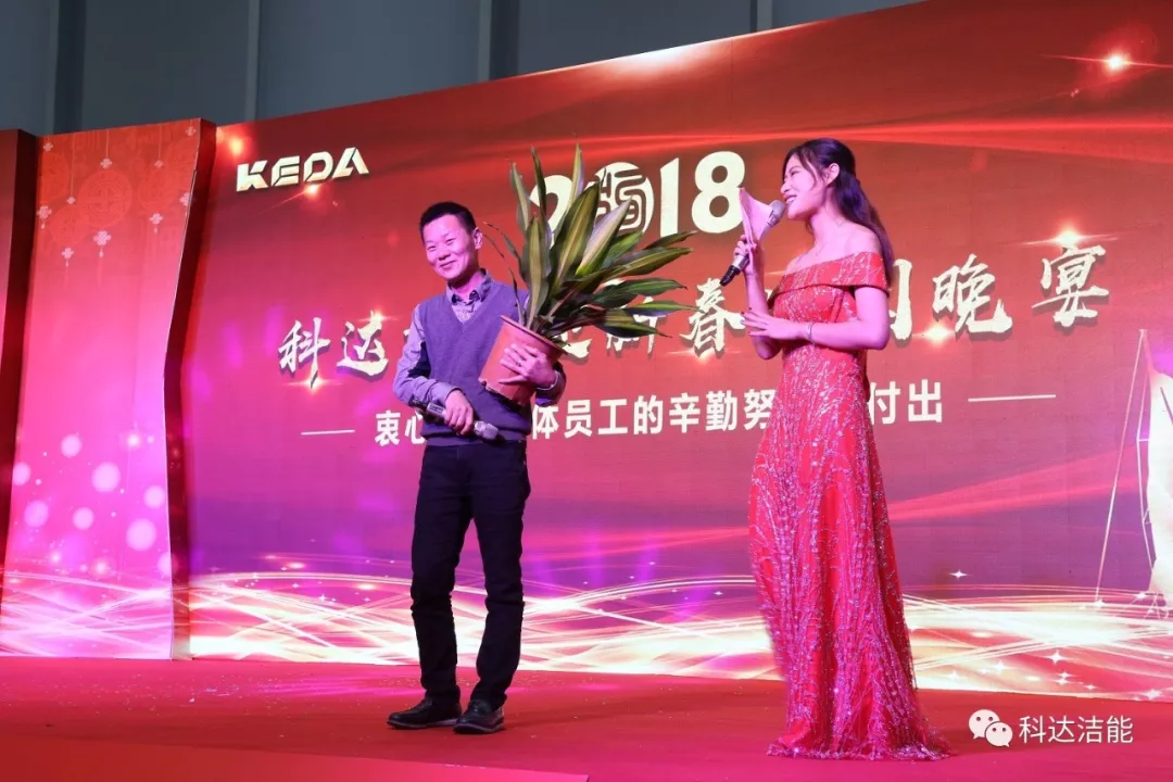 晚宴上,邊董作了慷慨激昂的致辭,他講道,2018年,科達(dá)和力泰聯(lián)姻已經(jīng)6年了,6年來(lái)彼此都創(chuàng)出了很好的業(yè)績(jī),但是一起歡聚還是第一次,2017年下半年開(kāi)始,我們深深的感到科達(dá)與力泰只有更加深入的融合和整合才能促進(jìn)我們更好的發(fā)展,大家都是一家人,一個(gè)整合更好的科達(dá)是我們大家共同的心愿,科達(dá)2017年不含稅銷(xiāo)售收入首次超過(guò)50億,2018年我們廣東建材機(jī)械板塊要必保實(shí)現(xiàn)雙五的目標(biāo)(50億銷(xiāo)售,5億利潤(rùn)),爭(zhēng)取實(shí)現(xiàn)雙六的目標(biāo)(60億銷(xiāo)售,6億利潤(rùn)),整個(gè)科達(dá),爭(zhēng)取實(shí)現(xiàn)雙八的目標(biāo)(80億銷(xiāo)售,8億利潤(rùn)),如果沒(méi)有很好的文化整合與團(tuán)結(jié)奮斗的精神,這個(gè)目標(biāo)是不容易實(shí)現(xiàn)的,過(guò)去六年來(lái),科達(dá)與力泰的合并,是行業(yè)的幸事,也是大家共同的幸事,大家也取得了合并以后的發(fā)展成果,相信今天的晚宴是我們大整合、大團(tuán)圓、大歡聚的開(kāi)始,從今以后, 每年12月8日的司慶都在此歡聚一次。最后,預(yù)祝大家2018新年快樂(lè),身體健康、萬(wàn)事如意,闔家幸福,并對(duì)仍然堅(jiān)守在工作崗位、駐外一線(xiàn)來(lái)不了晚宴現(xiàn)場(chǎng)甚至春節(jié)都回不了家的我們最可愛(ài)的科達(dá)人表示感謝與祝福。