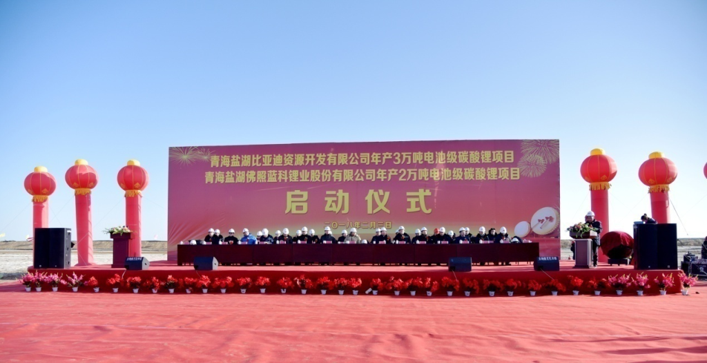 2月3日上午,廣東科達潔能股份有限公司重點建設項目——青海鹽湖佛照藍科鋰業(yè)股份公司(一下簡稱“藍科鋰業(yè)”)2萬噸電池級碳酸鋰項目在青海格爾木藍科鋰業(yè)現(xiàn)場隆重舉行啟動儀式,正式開工建設,青海鹽湖比亞迪資源開發(fā)有限公司3萬噸電池級碳酸鋰項目同時啟動。青海省副省長王黎明親臨現(xiàn)場宣布項目正式啟動,比亞迪董事長王傳福、科達潔能黨委書記李斌、鹽湖股份董事長王興富與青海省副省長王黎明共同按動啟動儀式觸摸球,見證兩個項目的正式啟動。