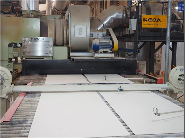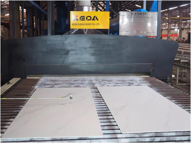 科達(dá)致力于巖板裝備的系統(tǒng)性開發(fā),除了在巖板系列壓機(jī)方面大膽探索,在巖板窯爐方面也勇于創(chuàng)新,獲得了客戶的高度信賴。為中盛企業(yè)研制的這條窯爐應(yīng)用了科達(dá)獨(dú)有的領(lǐng)先技術(shù):“三帶”比例優(yōu)化、ARFC比例燃燒控制系統(tǒng)、第三代ERSIII尾冷余熱回收利用系統(tǒng)、TUKS窯內(nèi)溫度場均勻系統(tǒng)、ICS智能控制系統(tǒng)、高精度傳動系統(tǒng)等,這些創(chuàng)新技術(shù)的應(yīng)用完美地保證了巖板區(qū)別普通瓷磚更高的燒成和冷卻要求,配合中盛自建的液化氣精準(zhǔn)配比供氣系統(tǒng),進(jìn)一步確保了巖板在后續(xù)切割時不會產(chǎn)生切割開裂問題。