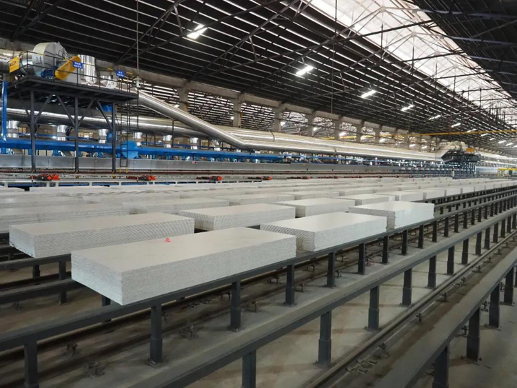 中盛這條巖板生產(chǎn)線的設(shè)計產(chǎn)量為8000-10000平方米/天,與當(dāng)下一條巖板線5000平方米/天的平均產(chǎn)量相比,其產(chǎn)量提高了60%;還將生產(chǎn)1200×2400(mm)和1600×3000(mm)等規(guī)格的巖板,無論在產(chǎn)量上和規(guī)格上,都具有明顯的優(yōu)勢??七_(dá)研發(fā)制造的新型大巖板壓機(jī)和KD25008板材壓機(jī)首次亮相,七層節(jié)能(全余熱)干燥器、最新工業(yè)4.0+數(shù)字智能化高端巖板窯爐、窯后儲磚系統(tǒng)、數(shù)控智能拋光線、包裝前機(jī)器人分級系統(tǒng)和包裝線等先進(jìn)高端設(shè)備在這條新線上大顯身手,為中盛企業(yè)實(shí)現(xiàn)“加碼智能制造,追求設(shè)備技術(shù)領(lǐng)先,嚴(yán)把工藝質(zhì)量關(guān)“的制造理念提供強(qiáng)有力支持!