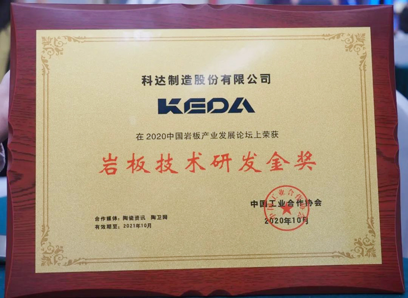 在當天的論壇頒獎環(huán)節(jié),科達、恒力泰品牌雙雙榮獲“巖板技術(shù)研發(fā)金獎”,總經(jīng)理楊學先被評為“巖板制造精英人物”。