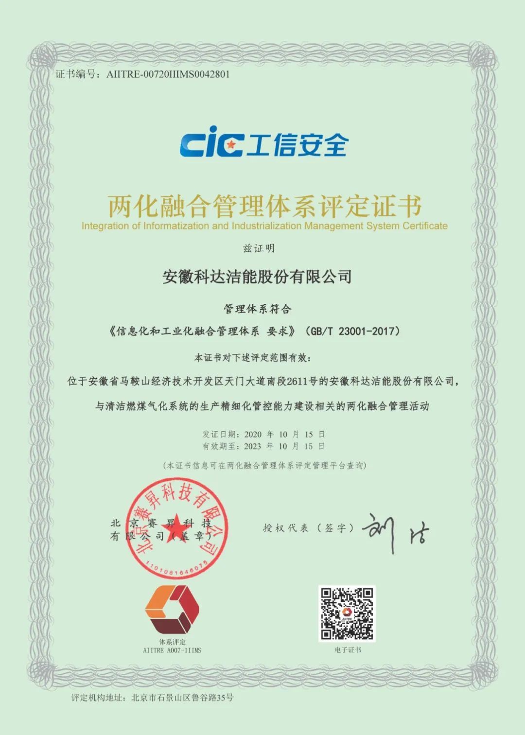 近日,安徽科達(dá)潔能股份有限公司通過現(xiàn)場評(píng)審、合規(guī)性審查、專家復(fù)核和網(wǎng)絡(luò)公示等環(huán)節(jié),順利獲得兩化融合管理體系評(píng)定證書,見證了公司運(yùn)營管理及信息化建設(shè)水平。