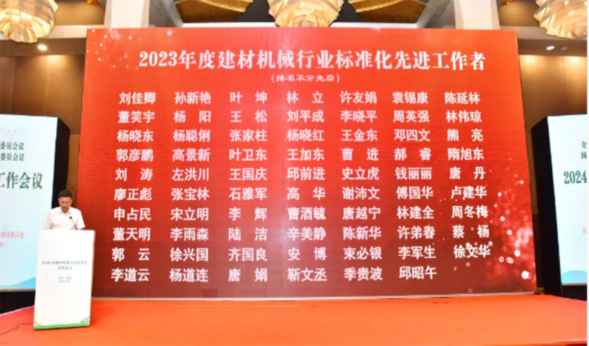 會(huì)上,國(guó)家建筑材料工業(yè)機(jī)械標(biāo)準(zhǔn)化技術(shù)委員會(huì)副主任委員彭明德宣讀了《關(guān)于表彰“2023年度建材機(jī)械行業(yè)標(biāo)準(zhǔn)化工作先進(jìn)集體、先進(jìn)工作者和優(yōu)秀技術(shù)標(biāo)準(zhǔn)獎(jiǎng)”的通知》。