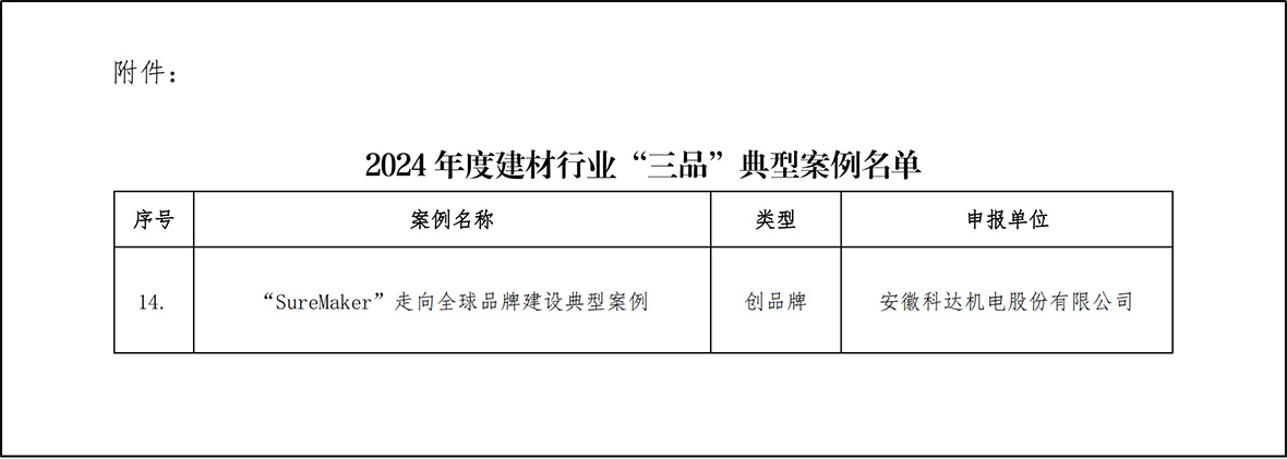 安徽科達(dá)機(jī)電入選2024年度建材行業(yè)“三品”典型案例