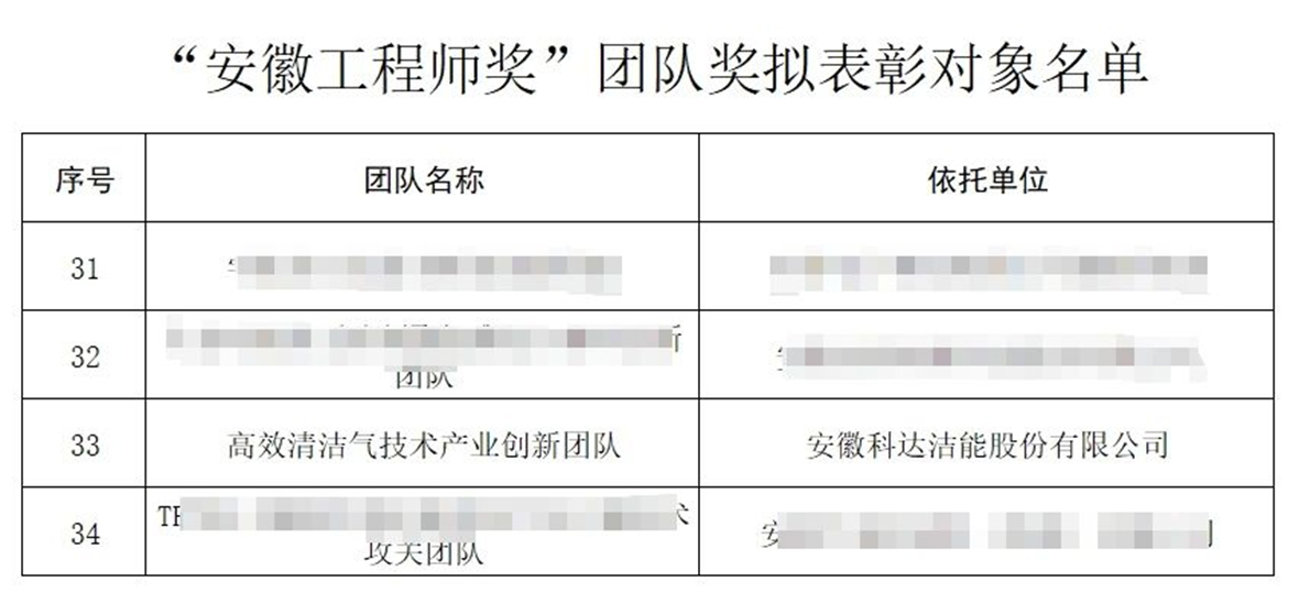 近日,安徽省人力資源和社會保障廳發(fā)布了《關(guān)于“安徽工程師獎”擬表彰對象的公示》,安徽科達潔能公司“高效清潔氣化技術(shù)產(chǎn)業(yè)創(chuàng)新團隊”憑借在工程技術(shù)領(lǐng)域的突出貢獻,成功入選。