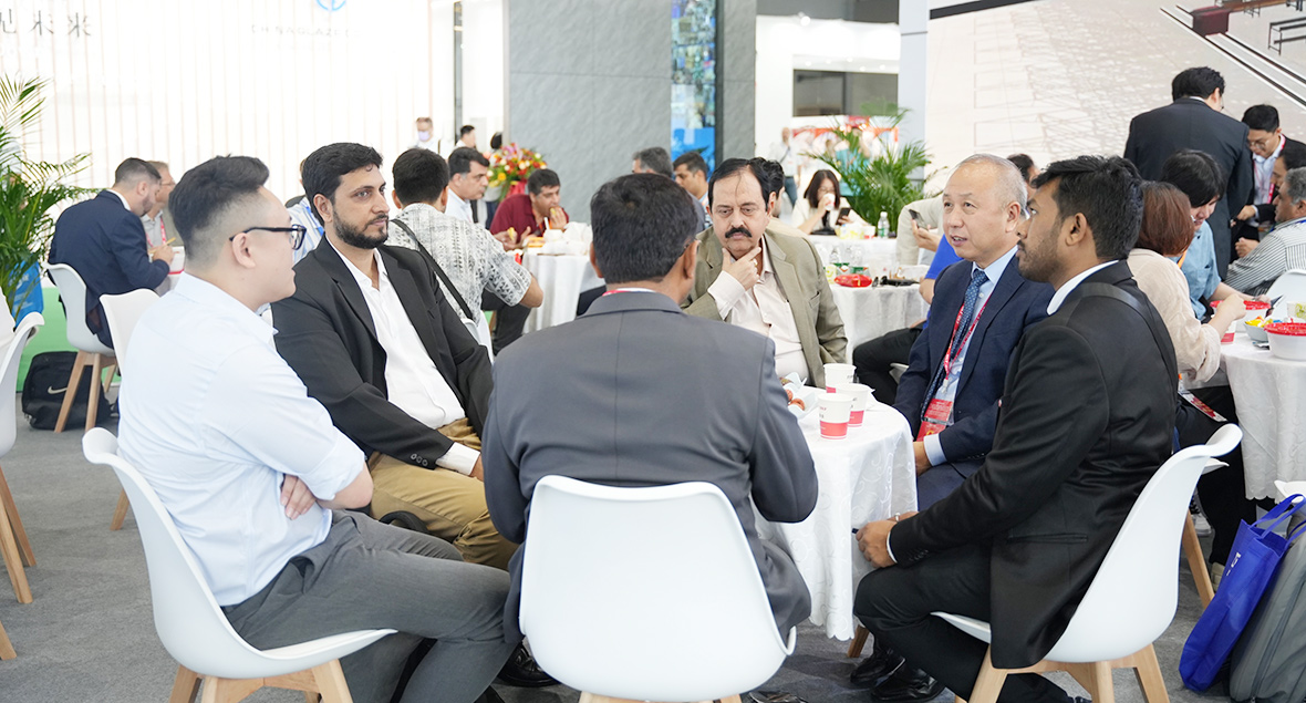 在本屆展會上,廣東康立泰以大量木結(jié)構(gòu)設(shè)計(jì)融合山水畫,加上大面積融合最新工藝的中島型瓷磚展臺,將古典與現(xiàn)代相融合,吸引了來自印度、東歐、阿爾及利亞、巴西、奧地利、捷克等近30個(gè)國家和地區(qū)的全球客商云集康立泰展位打卡交流,詳細(xì)了解前沿工藝技術(shù),擘畫美好未來。