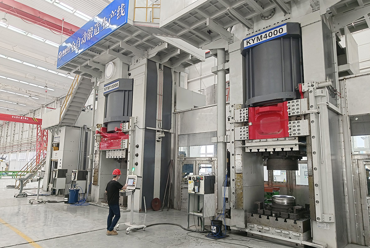 該條全自動鍛造生產(chǎn)線引入了3臺科達壓機,分別為預(yù)鍛部分的KYM4000鍛造壓機、成型鍛KYM10000鍛造壓機以及沖擴孔KYM800噸壓機。