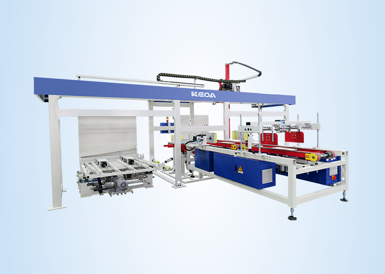 本設備將磚包按一定秩序堆放在磚架上,由叉車轉運入倉;也可以通過翻托裝置,將磚架上的磚垛轉移到木 托上,再由叉車轉運入倉。