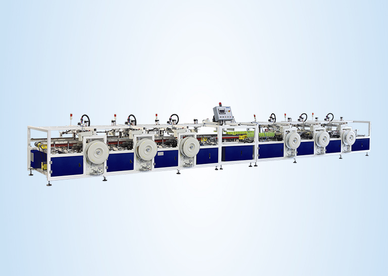 由 6 臺(tái)捆扎機(jī)和一臺(tái) 90 度轉(zhuǎn)臺(tái)組成,完成將磚包進(jìn)行交叉捆扎固定的工作。 采取“兩用一備”和“集中控制”的工作模式,以便操作人員在不停機(jī)的情 況下,解決換帶等問題。