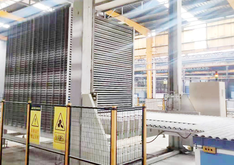 為了解決不同品種瓷磚混存的問題,科達針對需要頻繁轉換瓷磚花色品種的柔性生產(chǎn)需求,提出了柔性儲坯模式的概念。此種模式下,整個轉產(chǎn)過程不需要人來控制儲坯器將轉產(chǎn)前品種全部清空,層架式儲坯器依然按照先進先出的原則出磚,逐漸將轉產(chǎn)前品種替換為轉產(chǎn)后品種瓷磚。視覺分檢系統(tǒng)將轉產(chǎn)過程中混燒的產(chǎn)品進行區(qū)分。兩種產(chǎn)品由不同下磚機進行下磚,再由儲磚系統(tǒng)存放至不同軌道。整個轉產(chǎn)過程無需人工分檢且不會產(chǎn)生空檔期。此外,可根據(jù)不同的作業(yè)環(huán)境,選用直聯(lián)或斷開模式。實現(xiàn)空間最大利用率和周轉率。