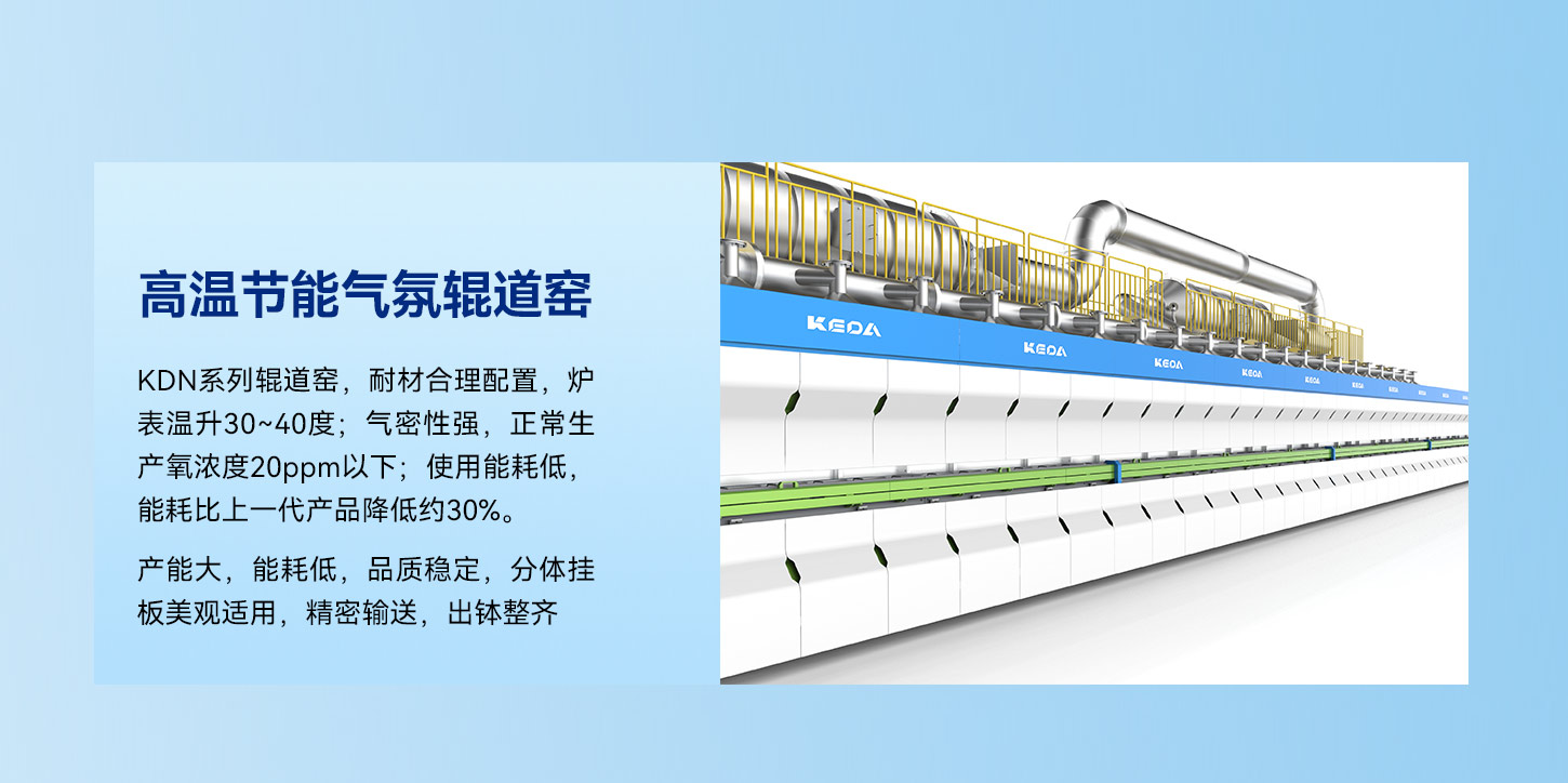 KDN系列輥道窯,耐材合理配置,爐表溫升30~40度;氣密性強(qiáng),正常生產(chǎn)氧濃度20ppm以下;使用能耗低,能耗比上一代產(chǎn)品降低約30%; 產(chǎn)能大,能耗低,品質(zhì)穩(wěn)定,分體掛板美觀適用,精密輸送,出缽整齊。