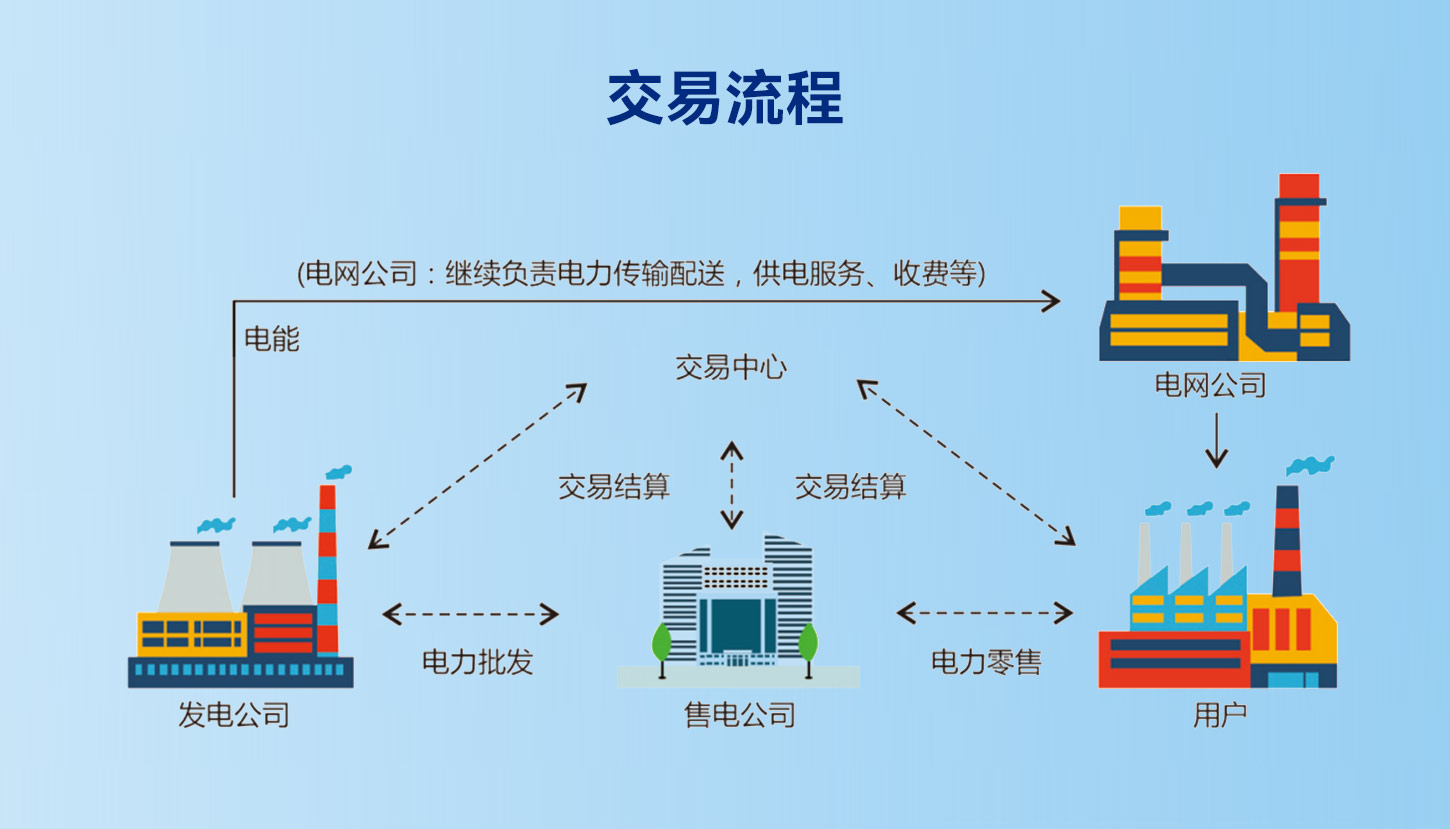 售電公司代理廣大中小電力用戶與發(fā)電企業(yè)之間通過市場(chǎng)化方式進(jìn)行交易。通過電力交易,發(fā)電企業(yè)獲得市場(chǎng)化發(fā)電權(quán)配額、售電公司獲得代理服務(wù)電費(fèi)、電力用戶獲得電力優(yōu)惠。