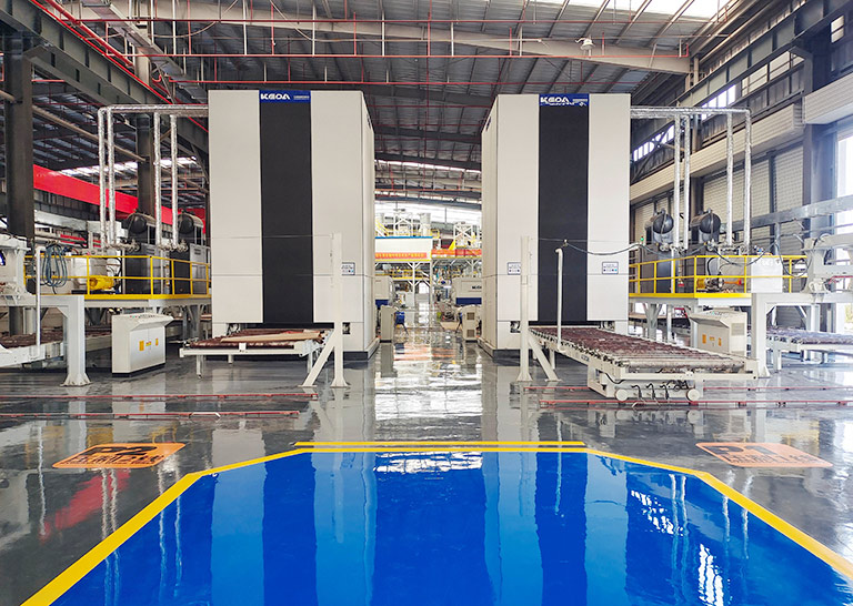 有機 / 無機人造石英板材的專業(yè)化生產(chǎn)設(shè)備,技術(shù)領(lǐng)先,運行穩(wěn)定,自動化程度高。2006 年國內(nèi)第一條人造石英板生產(chǎn)線投入使用,經(jīng)過多年的技術(shù)積累、產(chǎn)品升級和工藝研發(fā),設(shè)備與工藝日臻完善,在國內(nèi)和海外建設(shè)了多條人造石英板整廠項目,是高效、環(huán)保、智能化的行業(yè)標(biāo)桿。